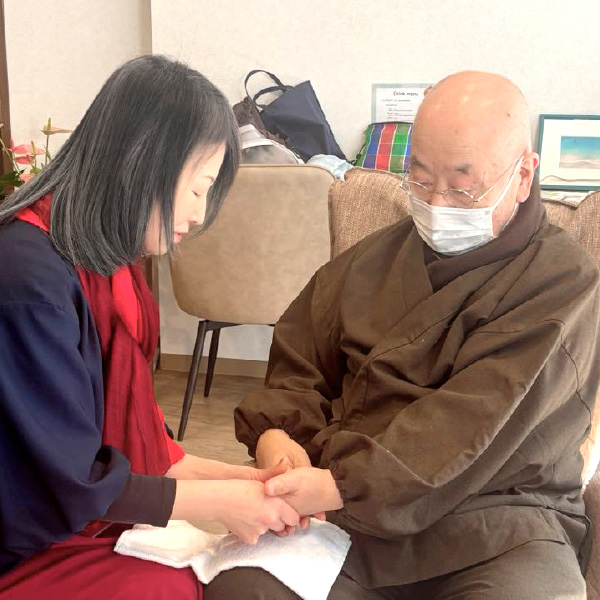 さまざまな活動の中で人による手当てのちから、つまり「ふれること」がもたらす安らぎと癒しの力に気づき独自のハンドセラピーを構築。